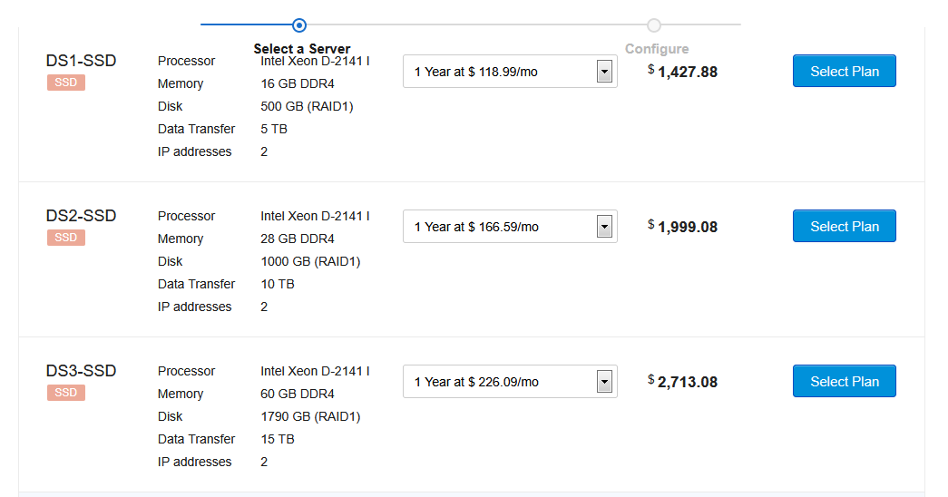 Our servers are powered by SSD storage, DDR4 Memory and Xenon D processors, and can smoothly handle any type of workload — from a critical business application to a high-traffic website.