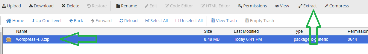 Upload your WordPress zip files (wordpress-version.zip) into your html home directory. The wordpress-version.zip will be in your html directory now.