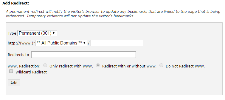Click Redirects link, and then you will go to following page: